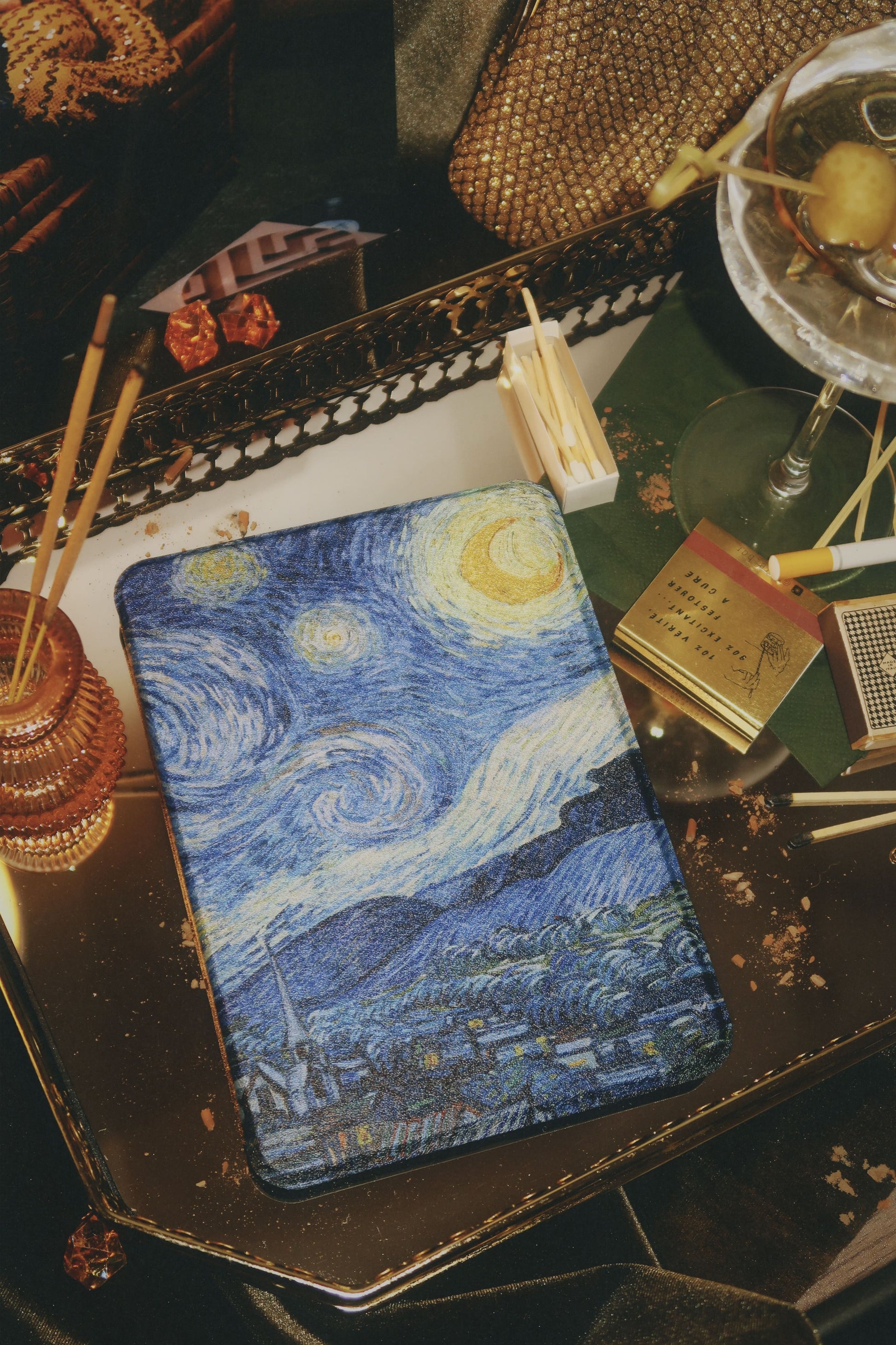 a swirling midnight sky in deep blues and glowing golds. textured, moody, and instantly recognizable. this one feels like the perfect blend of classic art and midnights energy: a little restless, a little dreamy, and made for the readers who come alive after dark.