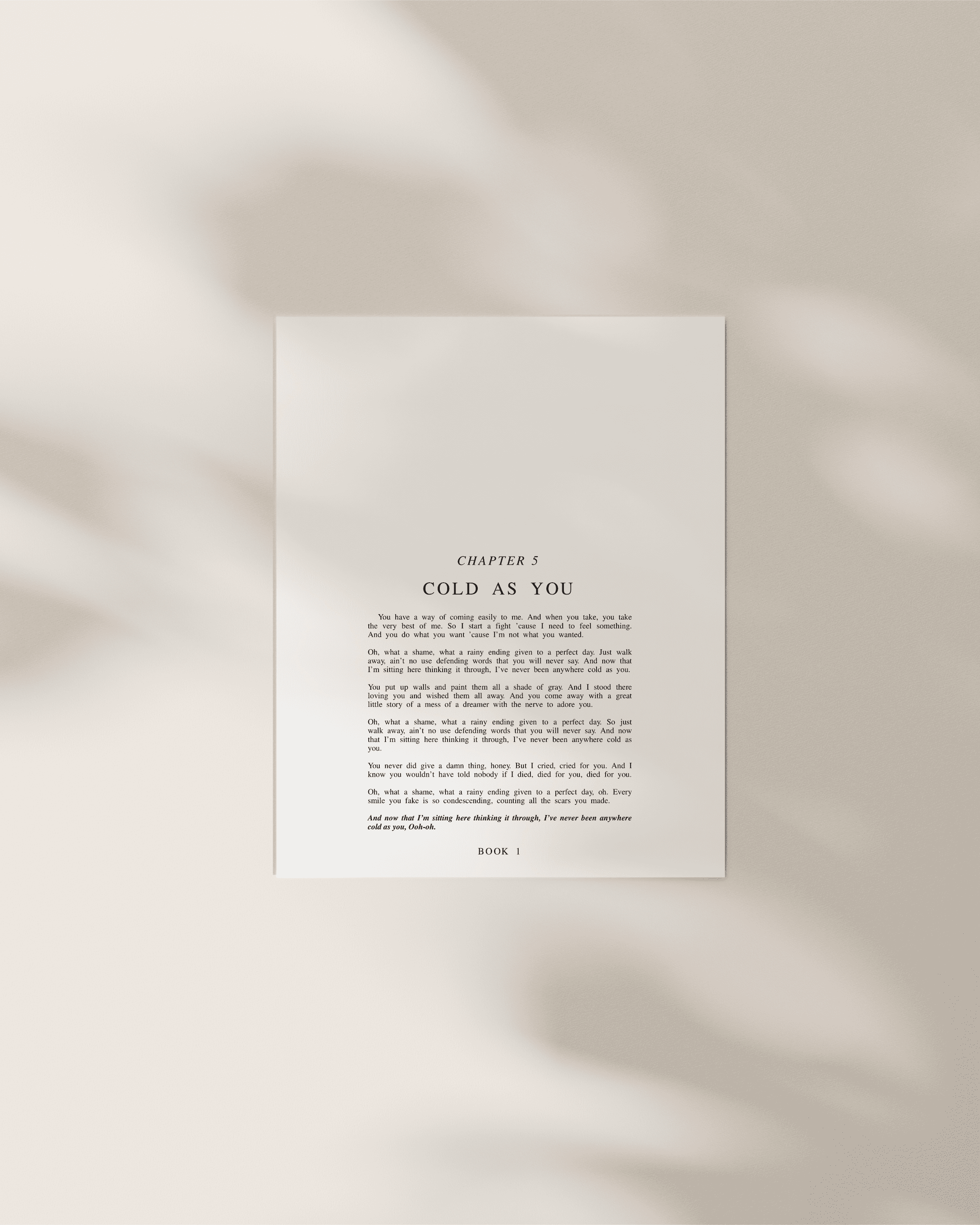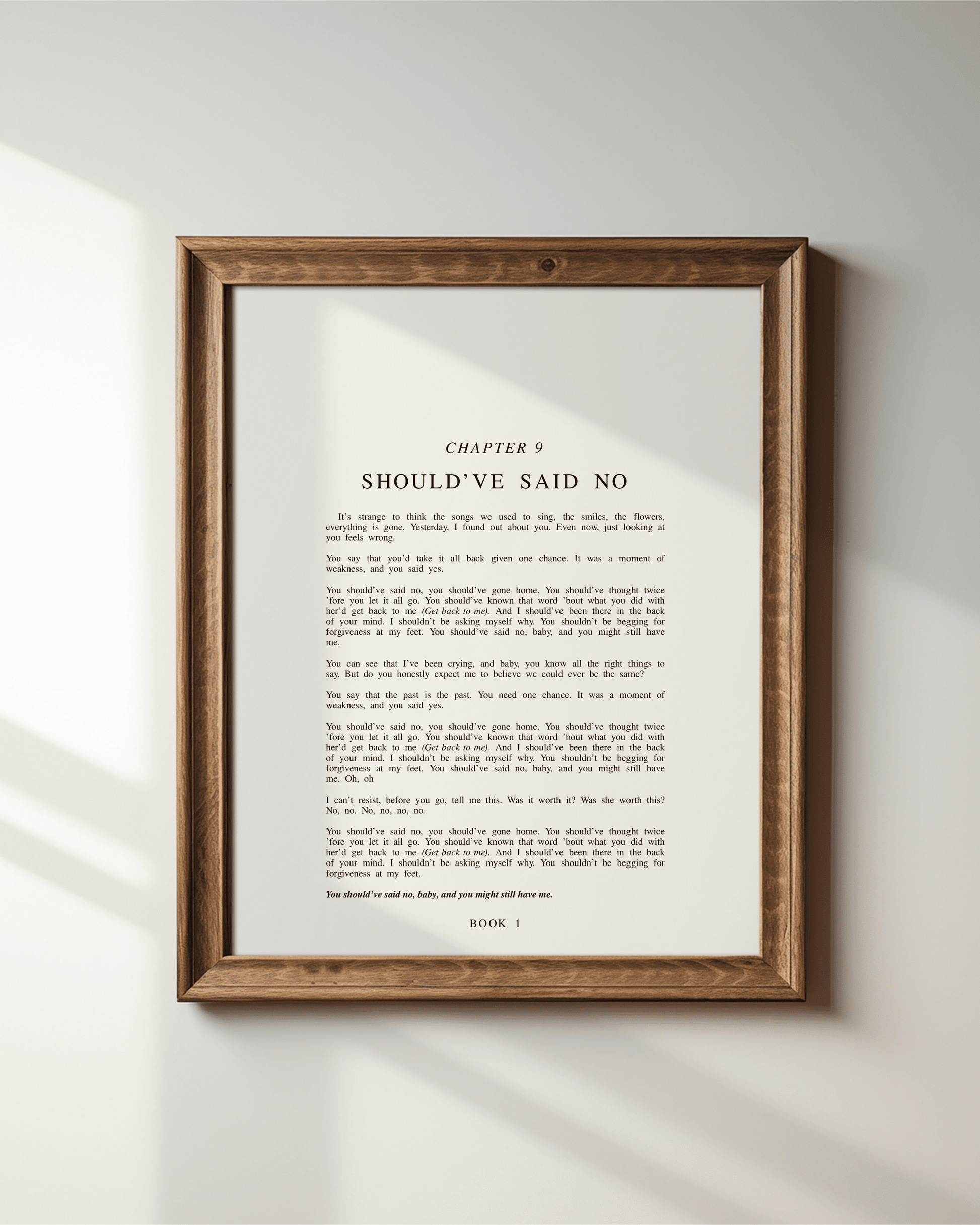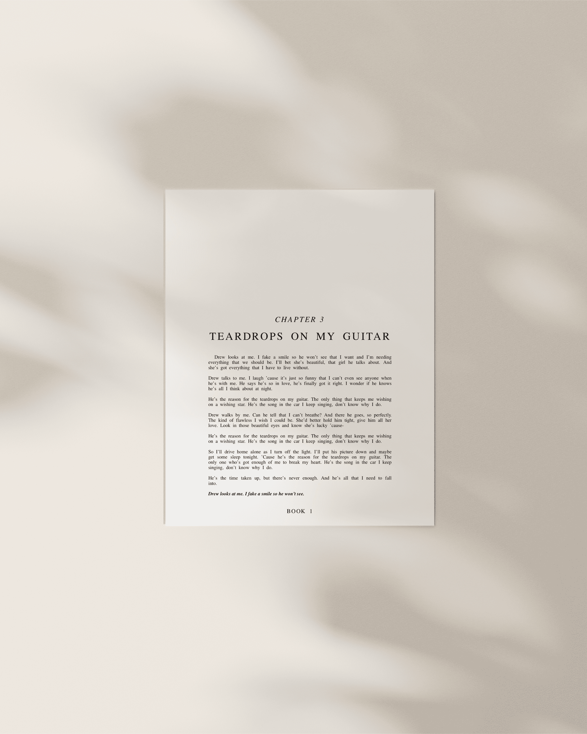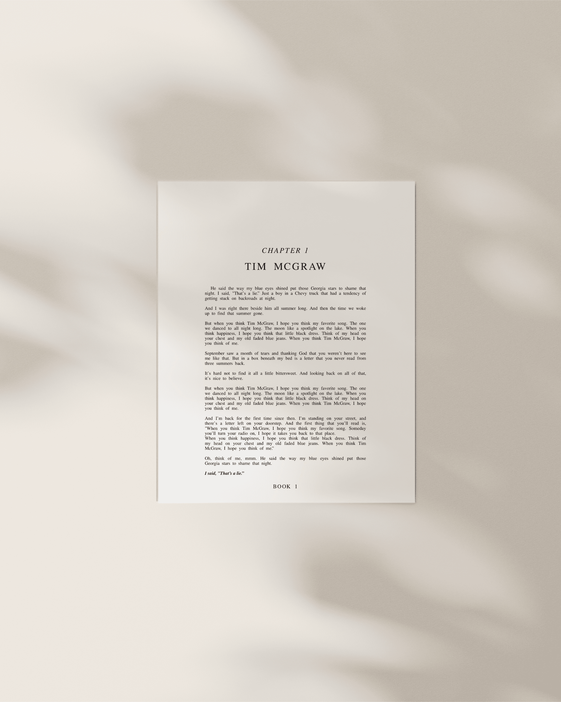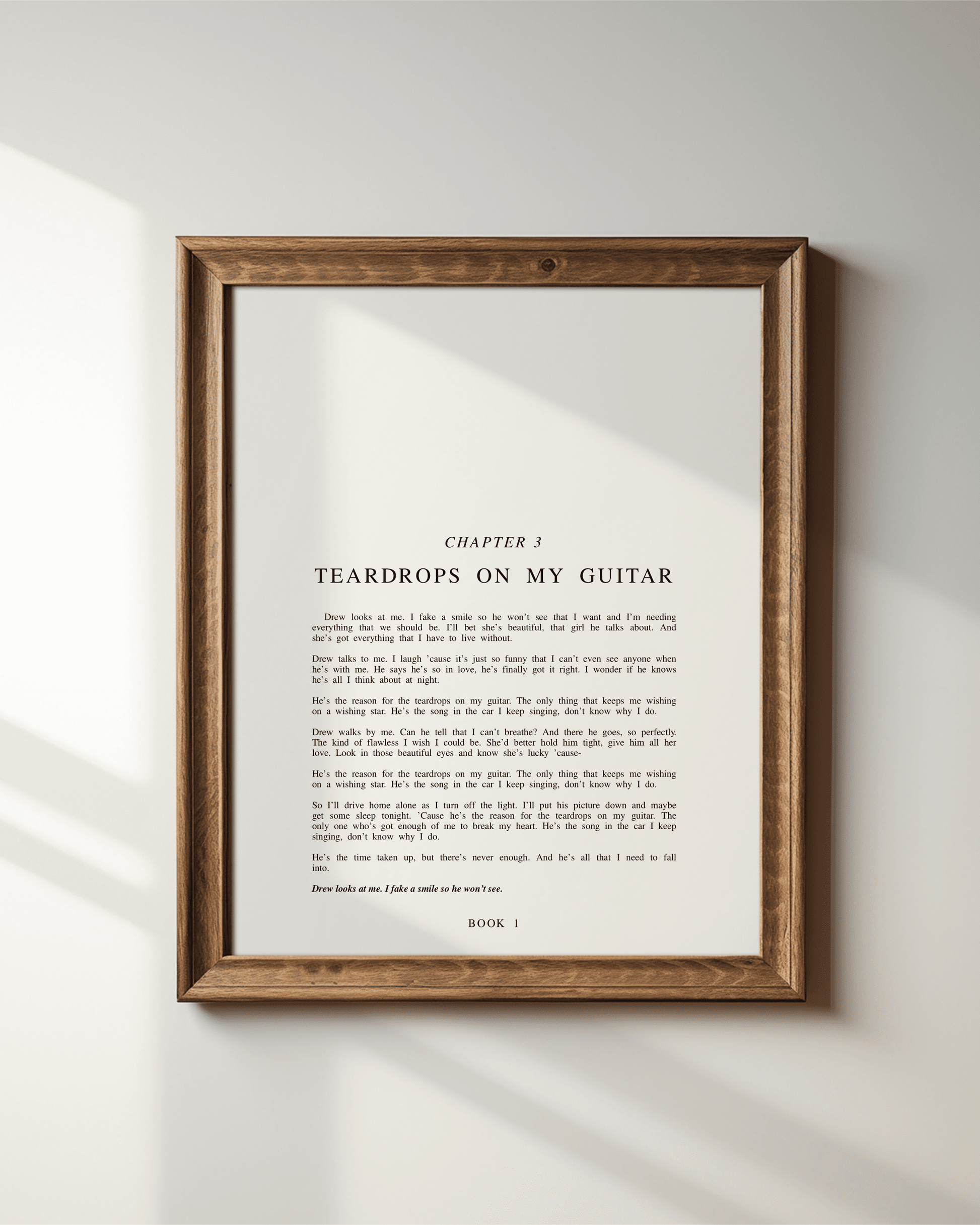 Introducing The Debut Chapter Art Prints - a minimalist 8x10 collection that transforms Taylor's lyrics into literary-inspired art, perfect for enhancing your space. These prints exude sophistication and are a timeless addition to any art collection. Pair it with your favorite frame or simply prop it up against the wall for an effortlessly elevated look.