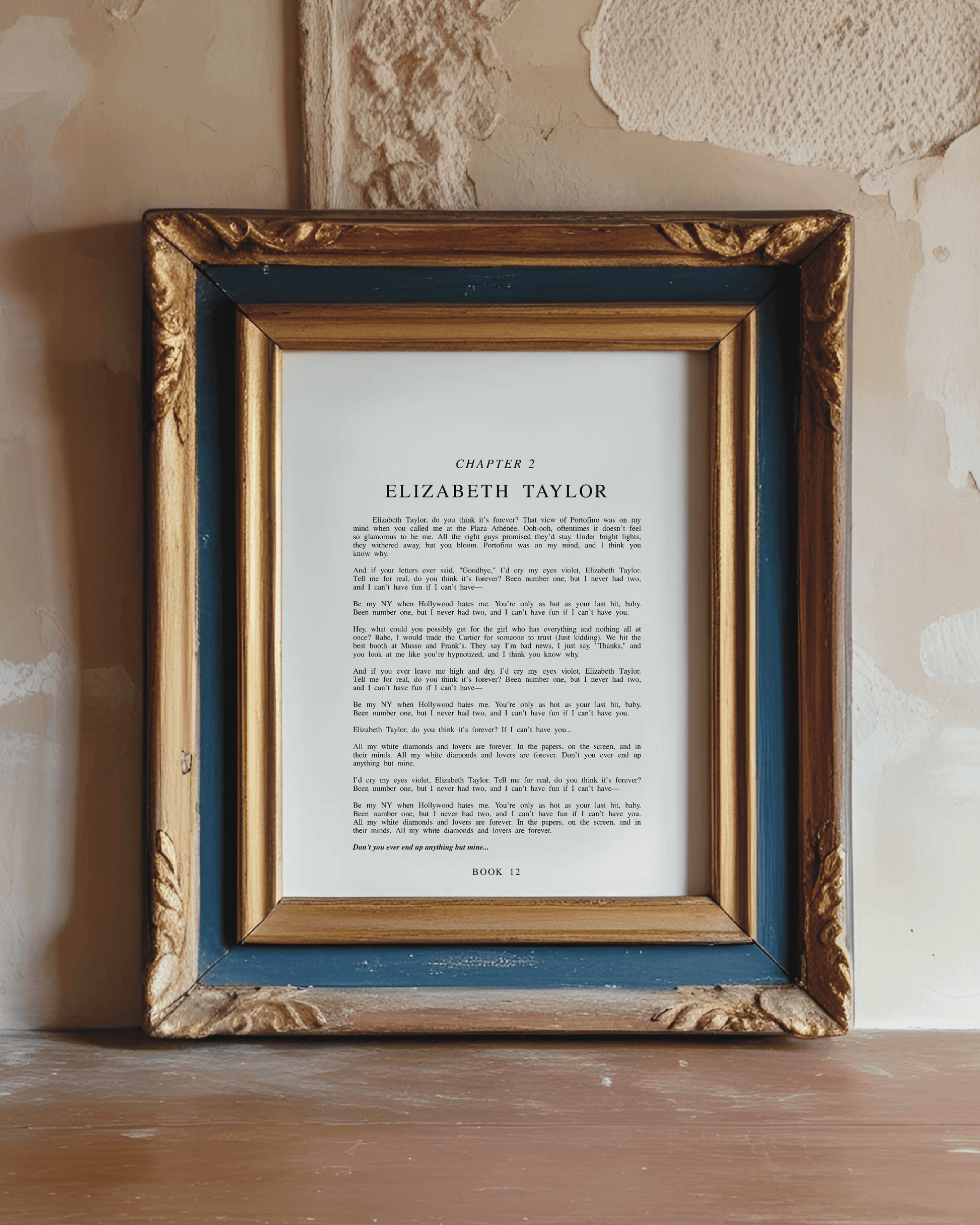 Introducing The Life of a Showgirl Chapter Art Prints - a minimalist 8x10 collection that transforms Taylor's lyrics into literary-inspired art, perfect for enhancing your space. These prints exude sophistication and are a timeless addition to any art collection. Pair it with your favorite frame or simply prop it up against the wall for an effortlessly elevated look.